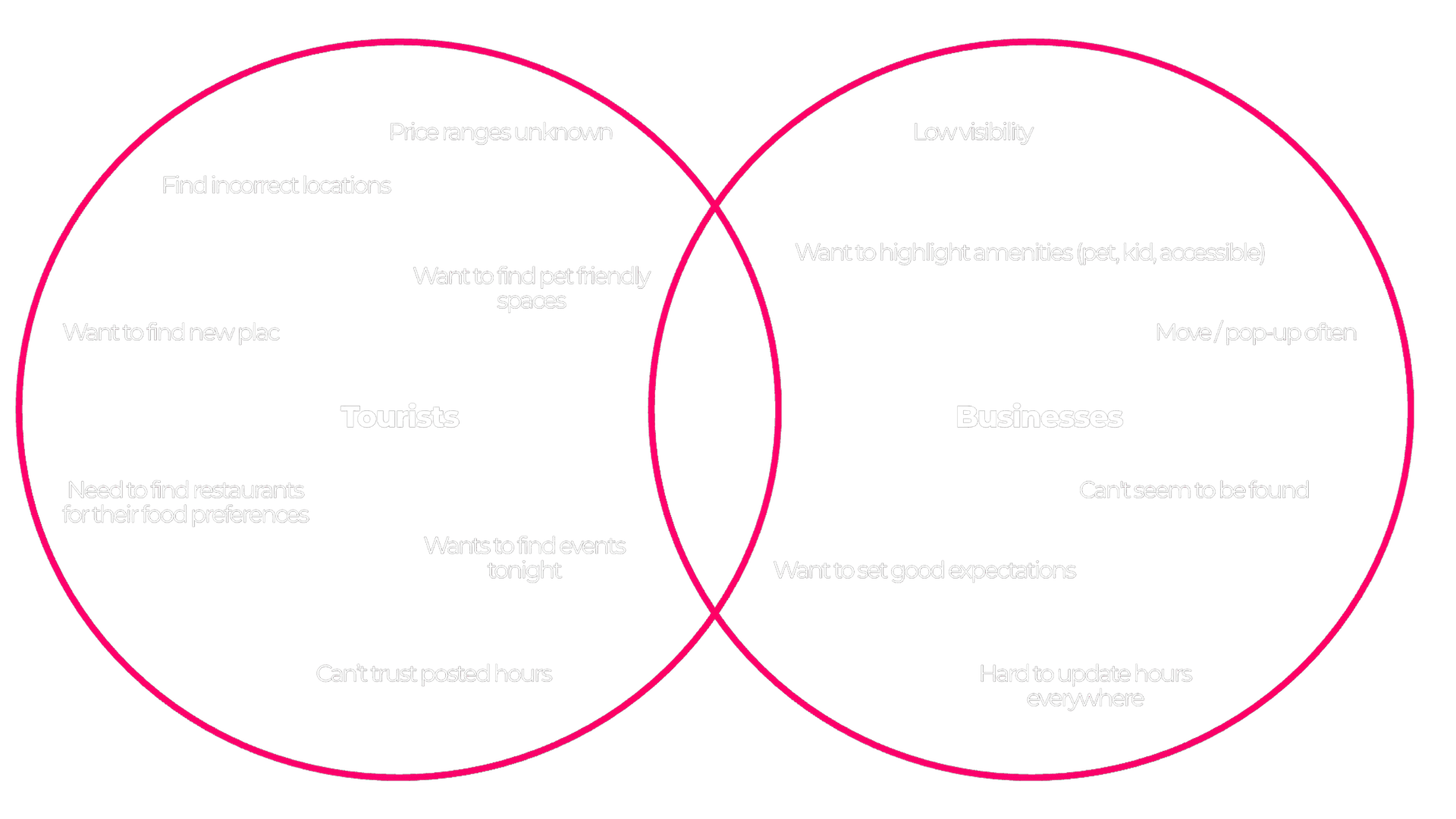 This project set out to design a solution that works for both sides: travelers who need trustworthy, up-to-date info and merchants who need easier ways to be found, update hours, and promote offers.